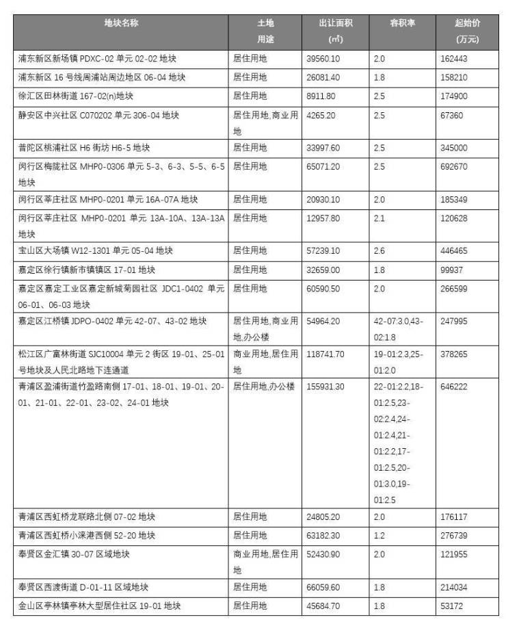 上海今年首批供地19宗:涉及11个区,总起始价483.4亿元