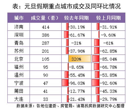机构:元旦重点十城新房成交1699套,同比下降56.9%