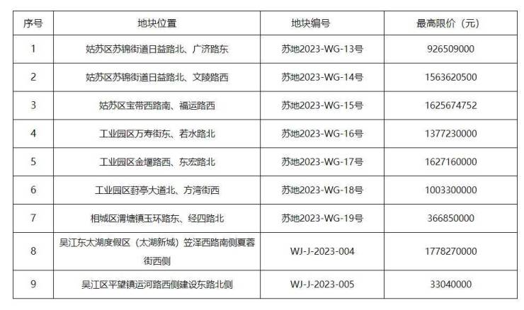 苏州挂牌第二批9宗涉宅用地,起拍总价89.58亿元