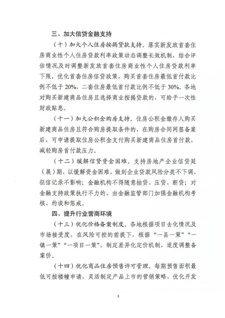 提升行业营商环境方面,优化价格备案制度。各地根据项目去化情况及市场接受度,在风险可控的前提下,根据“一县一策”“一镇一策”“一项目一策”,制定差异化定价机制,适度调整备案价。