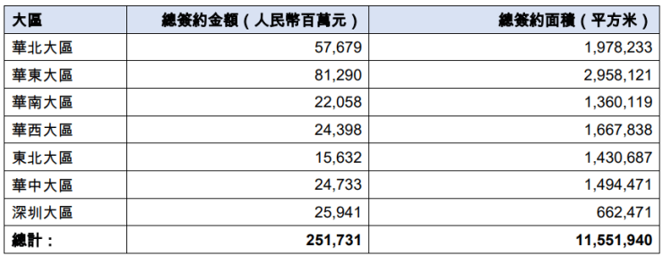 从各大区的销售情况来看,华东大区的总签约金额最高,约812.9亿元,签约面积为2958121平方米;签约金额紧随其后的为华北大区,签约金额约576.79亿元,总签约面积1978233平方米。