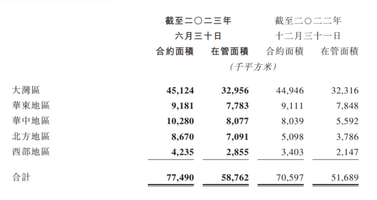 截至6月30日,越秀服务的合约面积为7750万平方米,在管面积为5880万平方米,分别较2022年底增长9.8%和13.7%,合约项目416个,在管项目46个。