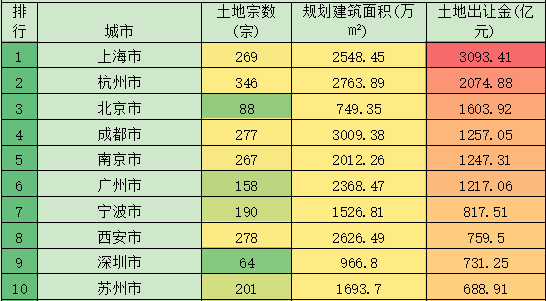 前10个月百城卖地2.6万亿 底价成交大潮中哪些城市超千亿?
