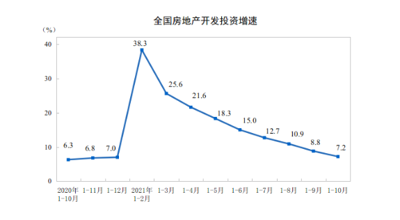 原标题:统计局:10月70城房价同比涨幅回落 1-10月地产开发投资增7.2%