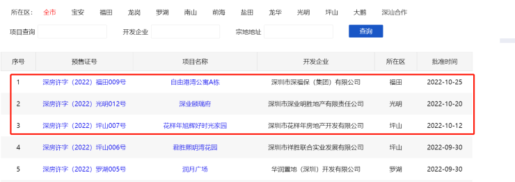 另外从供应端来看,深圳十月获批预售仅3个项目,分别是花样年旭辉好时光家园、深业颐瑞府、自由港湾公寓A栋。其中,商品住宅只有光明的深业颐瑞府一个,预售444套新房住宅,该盘于10月29日选房当日实现“日光”。而对比来看,九月深圳共有26个项目获批预售,其中住宅21个。