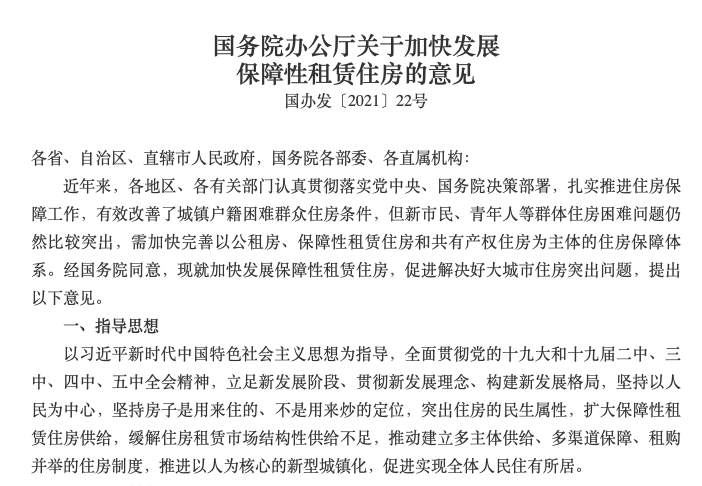 从中央到地方层面,加快发展“保障性租赁住房”的会议、意见等陆续出台。