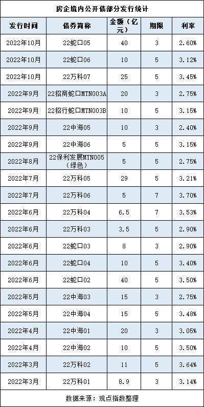 据观点新媒体不完全统计,现阶段仍持续发行境内公开债的房企包括万科、保利、招商蛇口、中海、华润置地、华发、首开、万达商管等,以国央企居多。
