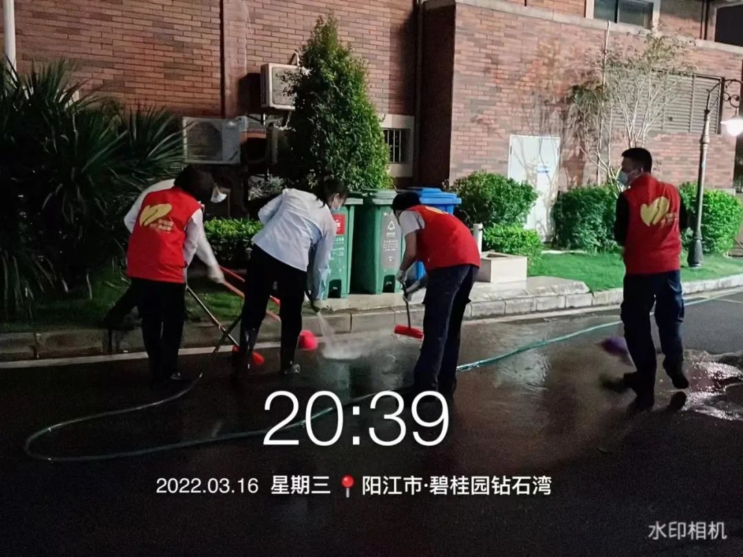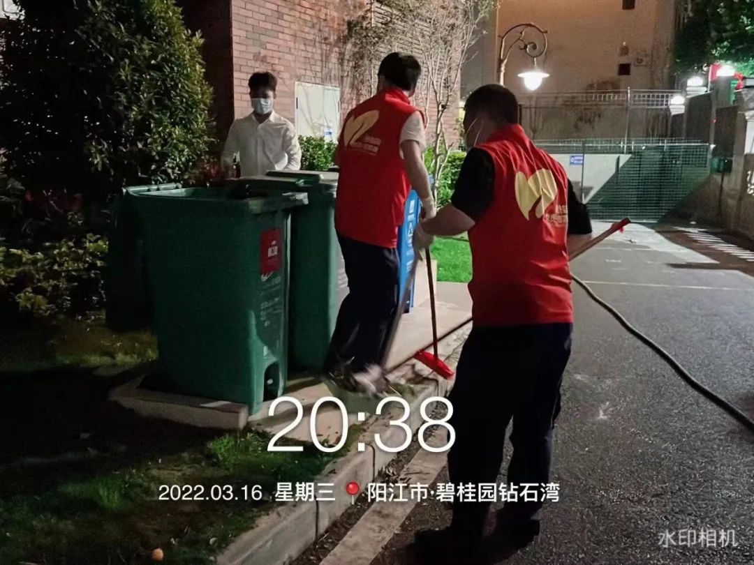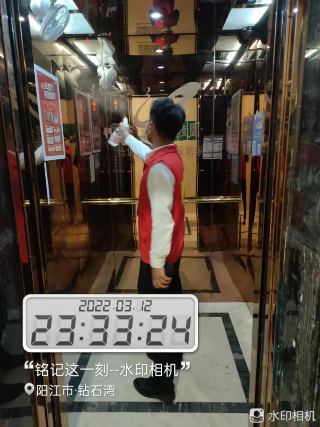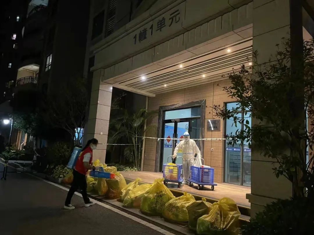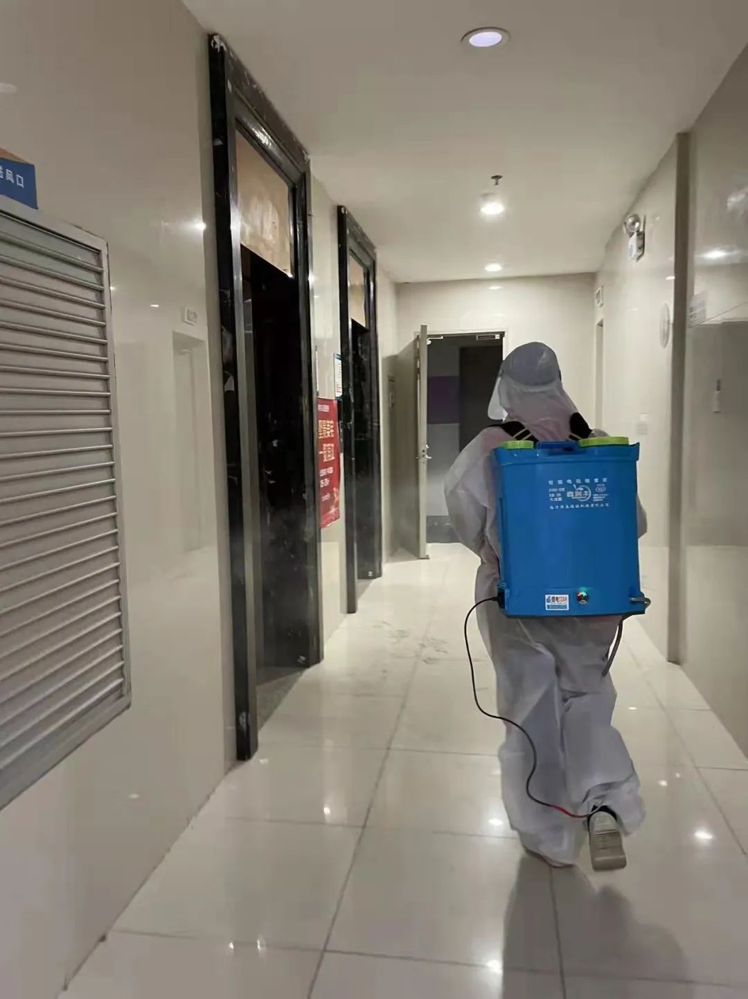 我只能和一线的团队们,在每天各类核酸检测采样、物资运送等工作完毕后,每晚大概22点左右和队员一起进行扫楼行动,每栋楼32层,逐层逐户清理垃圾、清洗垃圾桶及对苑区每个角落进行消毒,严格防控死角,不留安全隐患,用实际行动筑牢疫情阵地的每一道防控!