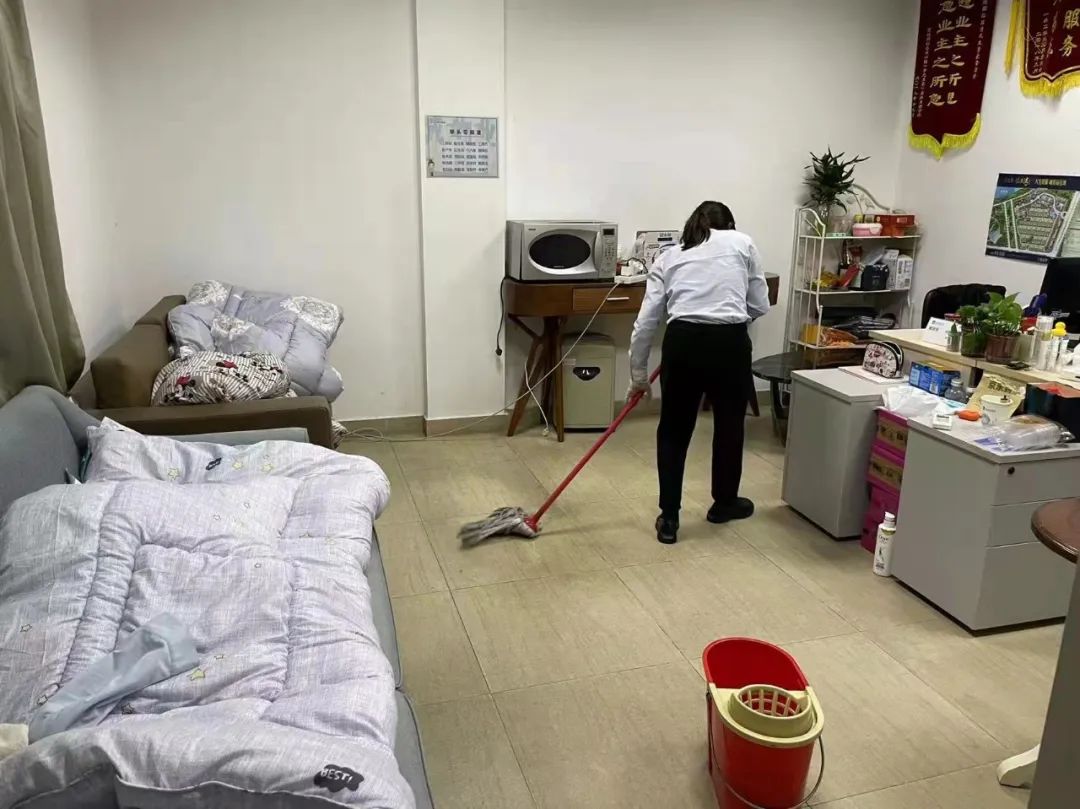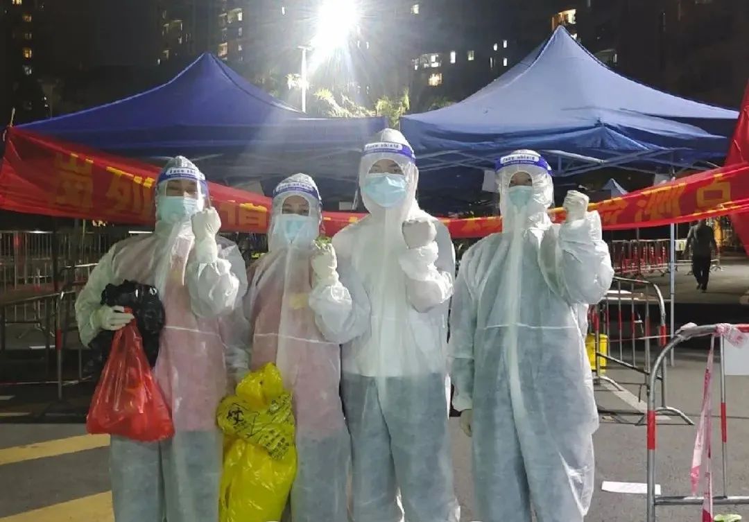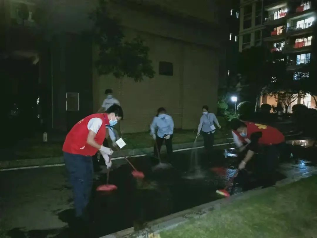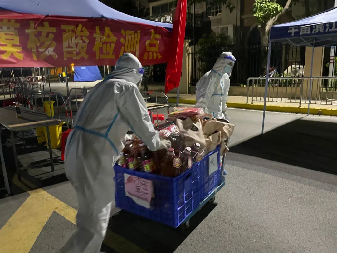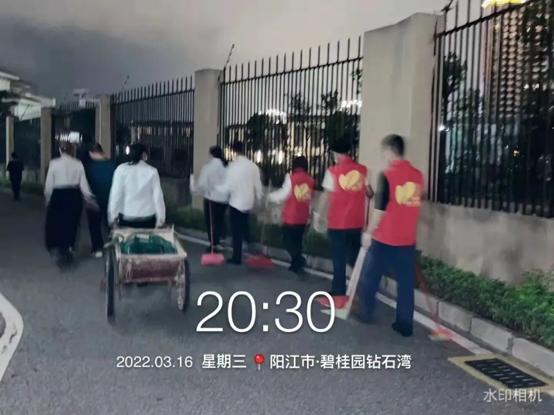 我只能和一线的团队们,在每天各类核酸检测采样、物资运送等工作完毕后,每晚大概22点左右和队员一起进行扫楼行动,每栋楼32层,逐层逐户清理垃圾、清洗垃圾桶及对苑区每个角落进行消毒,严格防控死角,不留安全隐患,用实际行动筑牢疫情阵地的每一道防控!