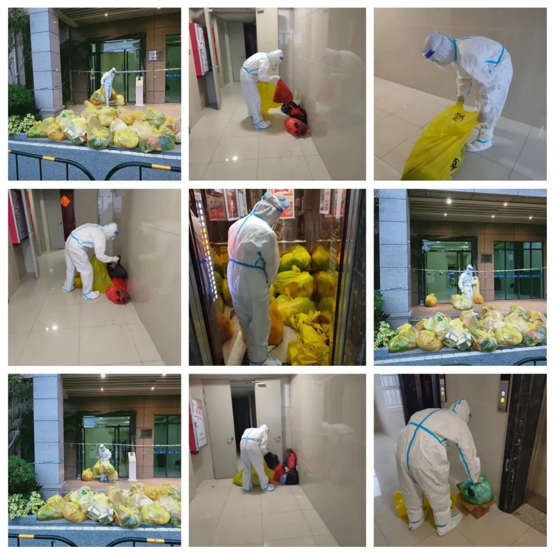 疫情防控期间,我每日除了为管控中的业主送外卖、快递、配合医护人员做核酸检测采样工作等,还负责全区的垃圾清理、冲洗、消毒工作。之前每个楼栋都有负责的清洁人员,现在疫情期间,让所有人员都聚集在苑区里面并不现实;