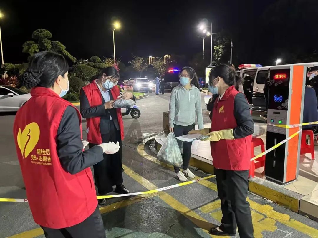 我们每天直至凌晨两三点,还在发布第二天的核酸检验通知;早上五六点又在发送较新通知,生怕业主错过较新的信息。有的业主亲戚送东西过来,一个电话,10分钟之内就帮忙送上门;晚上小孩肚子不舒服,我们接到电话,又马上协调社区居委帮忙拿药,把药及时送到业主手中......我们的手机24小时营业,不敢有1分钟的关机情况,确保业主随时可以找到我们。