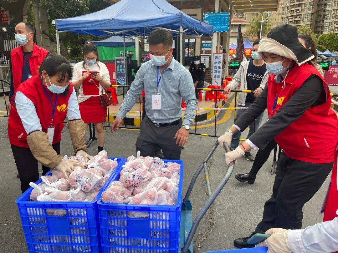 自疫情发生封控后,小区每天都会收到爱心企业单位、个人团体等捐赠物资给小区内的住户,都是由我们物业人跟志愿者一户户送上门,一份份派到业主的手中。