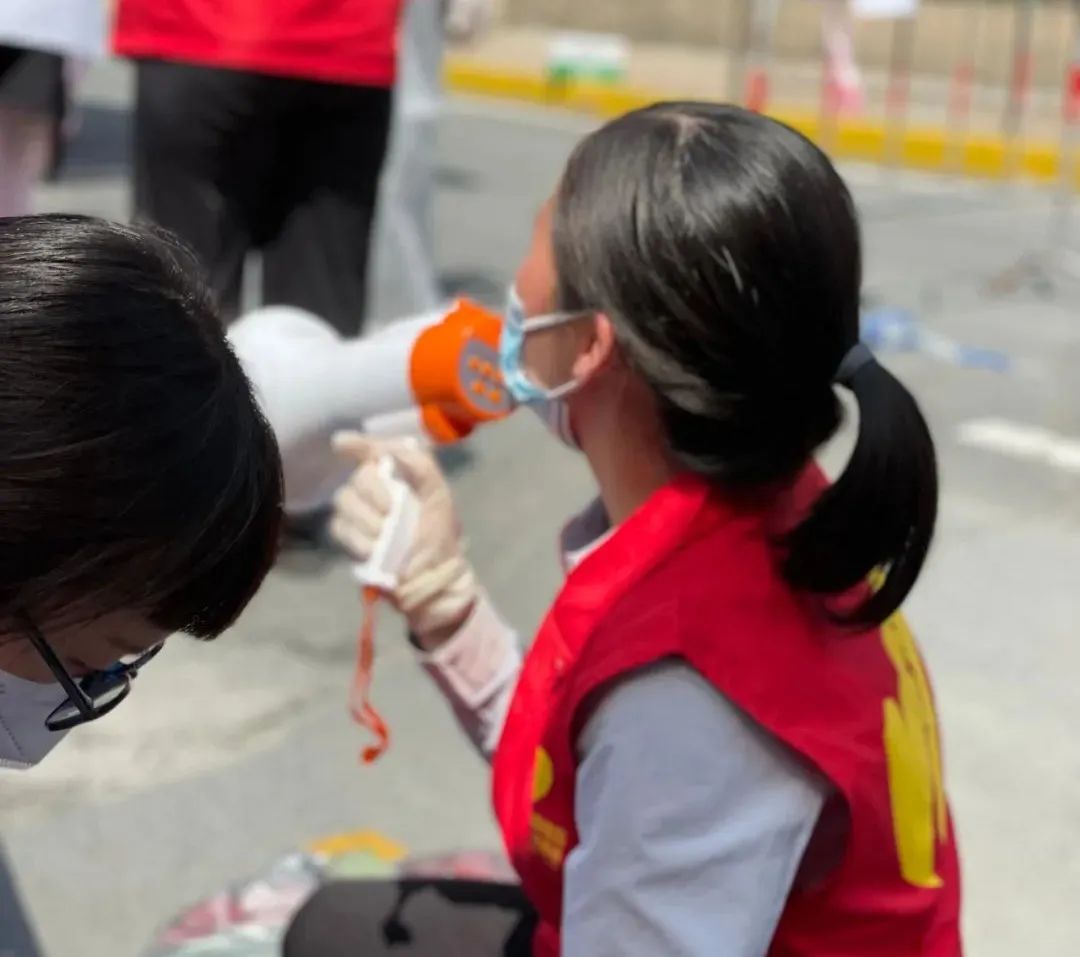 在防疫过程中,我也会遇到突发的情况,有一次封控区一位小朋友半夜发烧,情况很紧急,我知道后马上通知街道及防控部门及时处理,心里一直默念小朋友千万不能有事。还有遇到腿脚不便、不会使用手机微信的长者,我们就主动上前帮助搀扶,直至做完核酸采集,还交老人们如何使用手机。