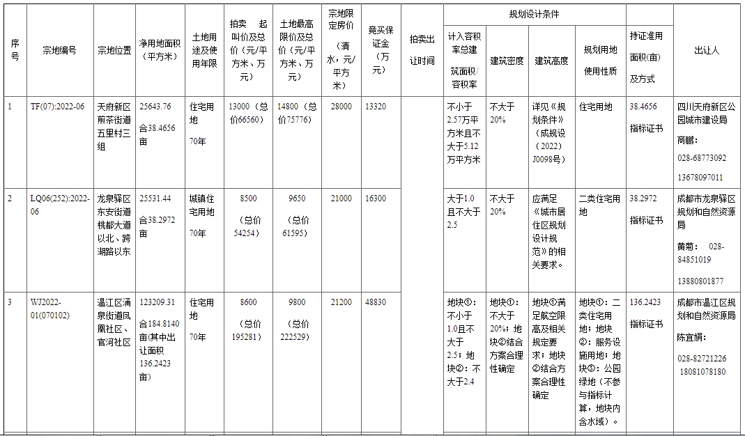 成都2022年首轮集中供地挂牌50宗 清水住宅较高限价3.2
