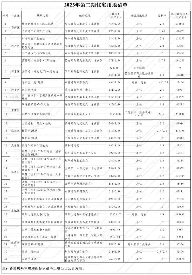 天津发布今年第二期宅地出让清单,涉及11个区31宗地块
