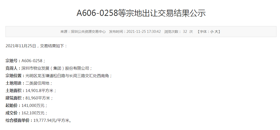 深圳三批集中供地11宗揽金368.37亿 其中7宗底价成交