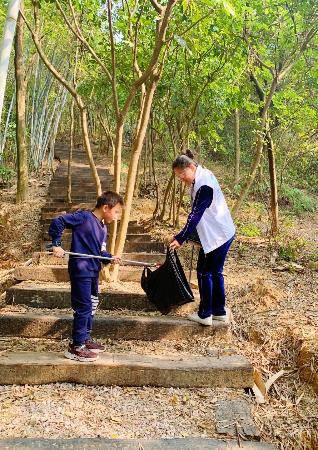 虽然岭南三月午后的阳光有些酷热,但志愿者们仍热情满满。大家行动迅速,分工有序,表现出不怕脏、不怕累、行动必有我的良好精神面貌,并对现场的游客群众进行文明登山和环保宣传。经过近2小时的辛勤劳动,登山健身步道更加干净了。