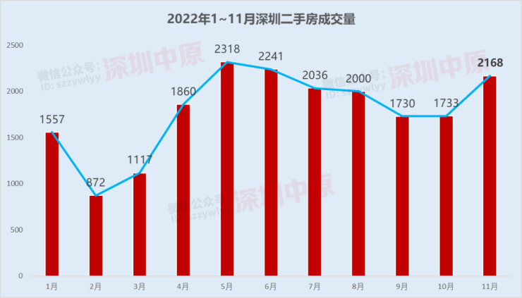 11月深圳二手房市场出现“回弹”,二手房成交结束连续两个月“不足2000套”的魔咒。