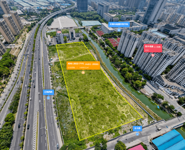绿地香港间接全资子公司无锡国盛房产开发有限公司联合无锡市北塘益民投资发展有限公司以6.84亿元的底价竞得编号为XDG-2022-71号的梁溪区全丰路与江海路交叉口东南侧地块。该地块建设用地面积为22196平方米,规划建筑面积为48831平方米,成交楼面价为14000元/平方米。