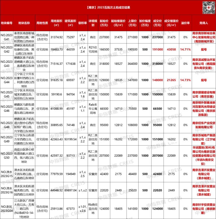 南京此次土拍热度分化较为明显,除了上述2宗地块,其余10宗地块均以底价成交。