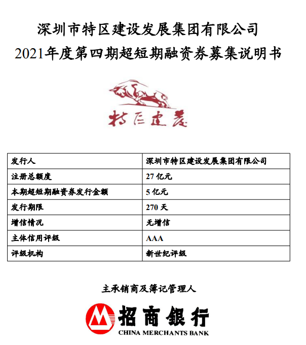 【环球网房产报道】11月29日,据上清所债券信息披露平台显示,深圳市特区建设发展集团有限公司发布2021年度超短期融资券发行披露材料。
