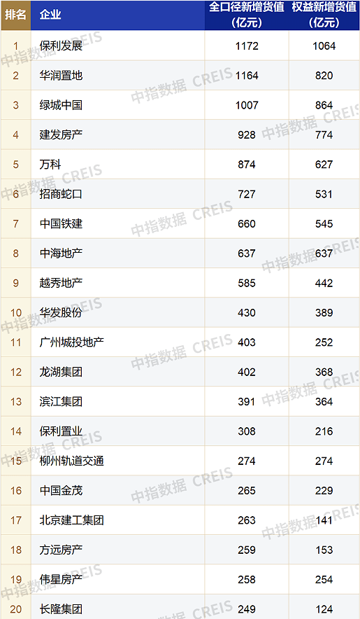 具体来看,排在前两位的保利发展和华润置地拿地额均超500亿元;绿城中国和建发房产分别以497亿元和424亿元分列第二、三名;中海地产、万科、招商蛇口、中国铁建、越秀地产、华发股份依次排在第五至十名,拿地额均超200亿元。