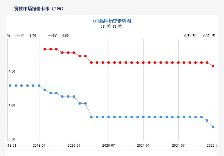 央广网北京1月20日消息(记者 门庭婷) 1月20日,中国人民银行授权全国银行间同业拆借中心公布,2022年1月20日贷款市场报价利率(LPR)为:1年期LPR为3.7%,5年期以上LPR为4.6%。这是5年期以上LPR时隔21个月后首次下调。