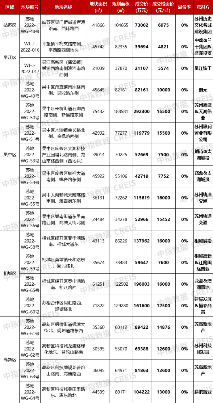 苏州第四批集中供地18宗地块均底价成交,8家民企参与竞拍