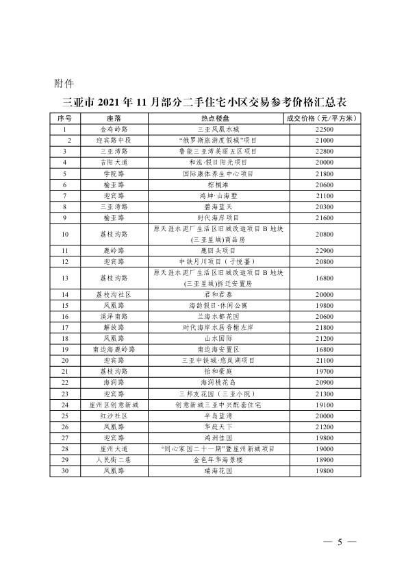 11月22日,海南省市三亚市住房和城乡建设局发布《关于进一步加强二手房市场交易监管工作的通知》(以下简称“《通知》”),提出每月将公布二手住房交易参考价格,金融机构等在业务办理过程中,要以发布的参考价格作为依据等五条举措。
