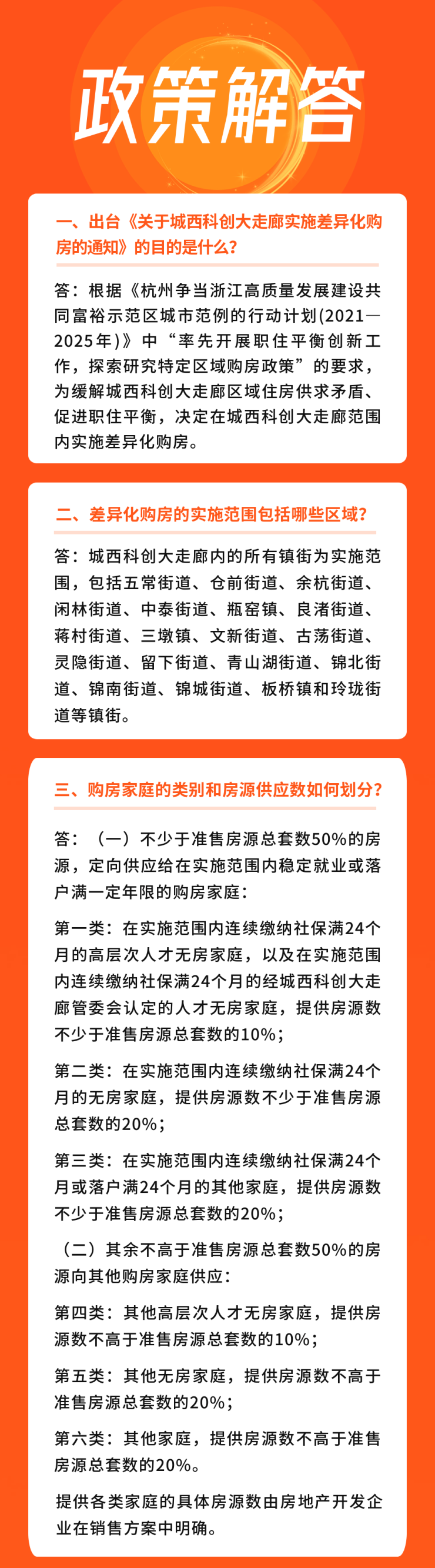 为缓解城西科创大走廊住房供求矛盾,促进职住平衡,11月21日,浙江省杭州市住房保障和房产管理局、杭州城西科创大走廊管委会联合发布《关于城西科创大走廊实施差异化购房的通知》(以下简称《通知》),明确在城西科创大走廊范围内实施差异化购房政策。