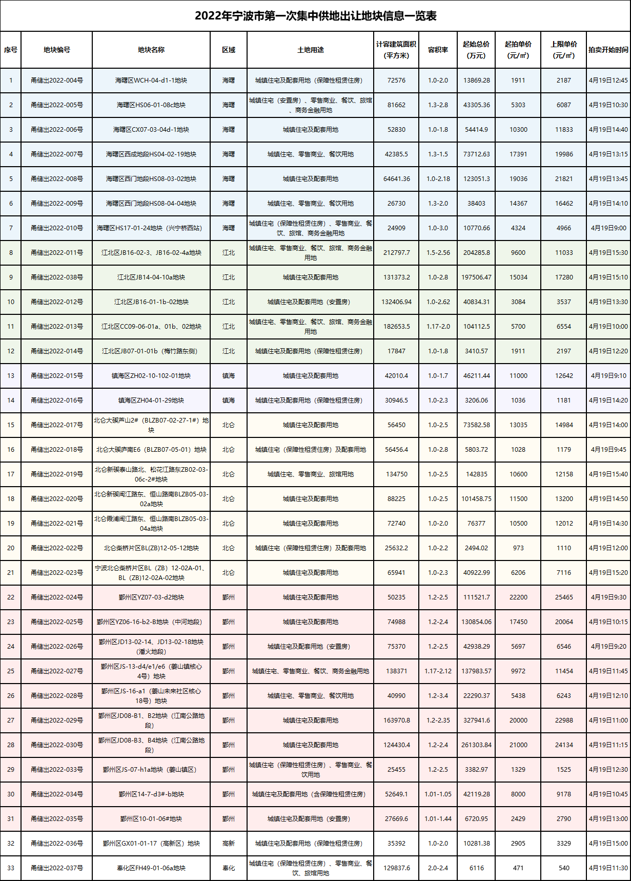 2022年宁波首轮土拍即将开启,33宗地块起拍总价超250亿