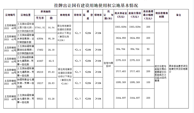 呼和浩特挂牌土左旗7宗商住用地 总起价1.83亿元