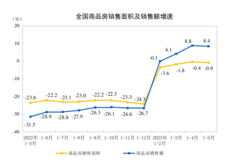 6月15日,国家统计局发布2023年1-5月份全国房地产市场基本情况,1-5月,全国商品房销售面积同比降幅扩大,房地产开发建设仍较低迷。