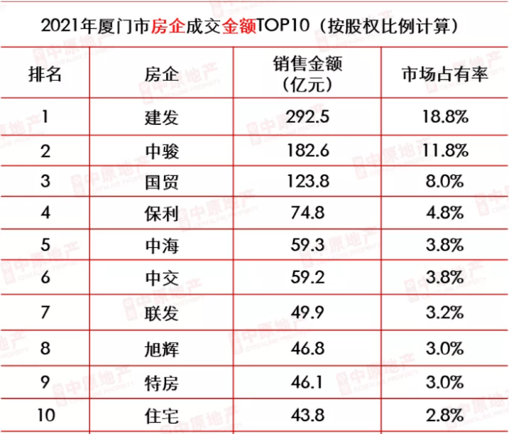 来源:中原地产厦门研究院(备案数据)