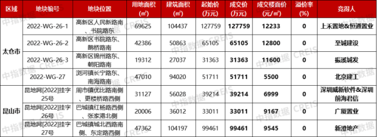 此外,太仓市2022-WG-27号地块由北京建工以底价5.17亿元竞得,该地块位于太仓市浏河镇长宁路东、南海路南,建设用地面积约4.7万平方米,用地性质为住宅用地。