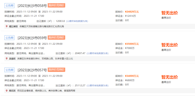 10月23日,湖南省长沙市自然资源和规划局发布国有建设用地使用权网上挂牌出让公告,以网上挂牌方式出让3宗国有建设用地使用权。