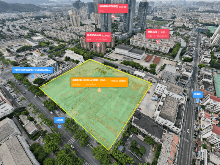 该地块规划为住宅用地,位于高新区狮山街道玉山路北、移动苏州分公司东,建设用地面积为20790平方米,规划建筑面积为37422平方米,起始总价为9.92亿元。