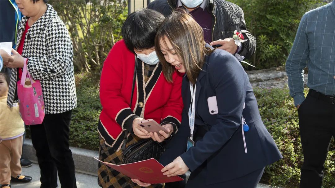 “以前听亲戚讲办理房产证,从排队等候到办理手续,跑几趟政府部门,最少要花费一星期时间,没想到自己居然能在收房当天就领证,真的令人感到意外和惊喜。”在交房现场,顺利将钥匙、房本一起拿到手的业主梁太太 ,亲身体验了“交房即发证”的新速度。