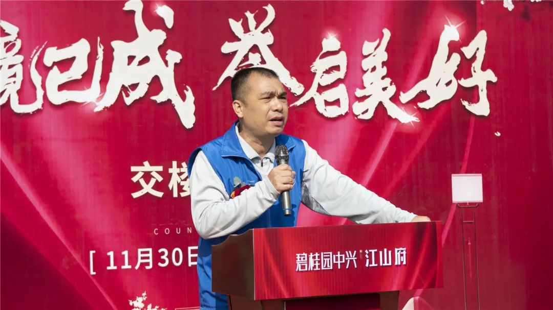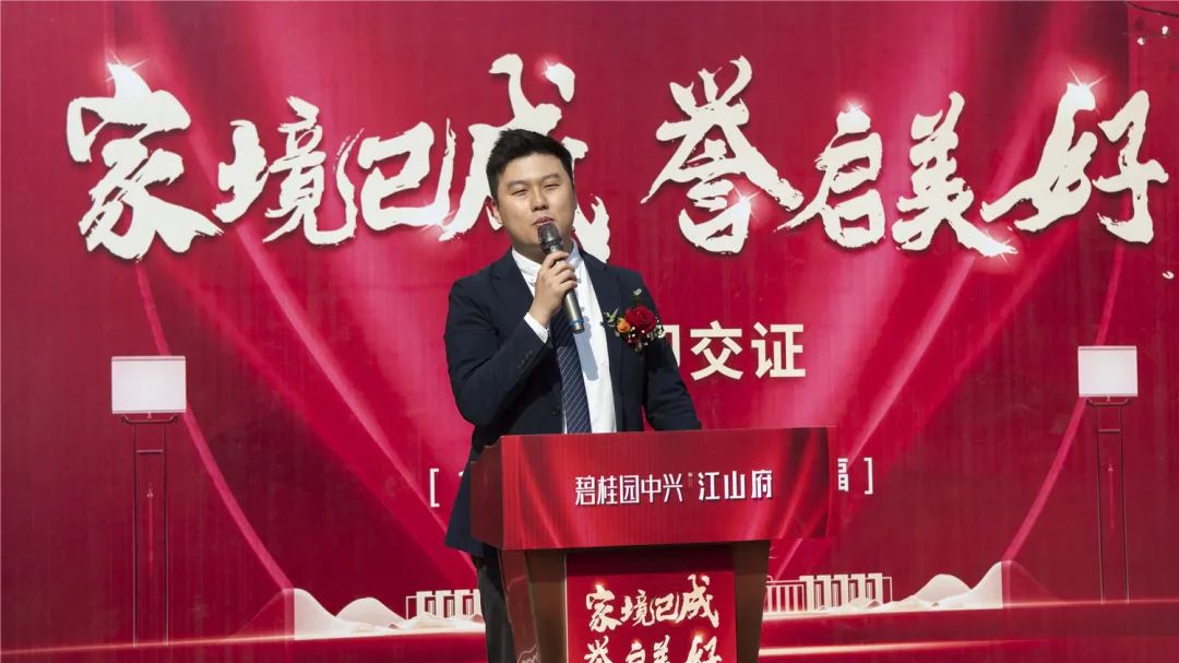 接着碧桂园中兴江山府(碧桂园城央花园)负责人张正浩总经理在致辞中介绍道,“交房即发证”是一项便民的民生工程,能简化购房者的办证手续,方便业主办理落户、子女入学等有关事宜,省心省时省力。