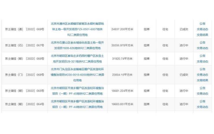 其中,朝阳区平房乡棚户区改造和环境整治项目(一期)PF-45地块,土地面积18681.224平方米,起始价21.2亿元。而朝阳区平房乡棚户区改造和环境整治项目(一期)PF-44地块,土地面积19603.851平方米,起始价22.2亿元。