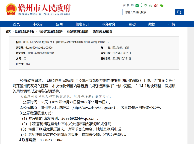 近日,儋州市人民政府发布了关于《儋州海花岛控制性详细规划优化调整》(以下简称《控规调整》)显示,在复议机关就海花岛39栋楼行政复议案,依法作出变更原拆除为没收的决定后,海花岛39栋楼的处置进程又迎来新进展。