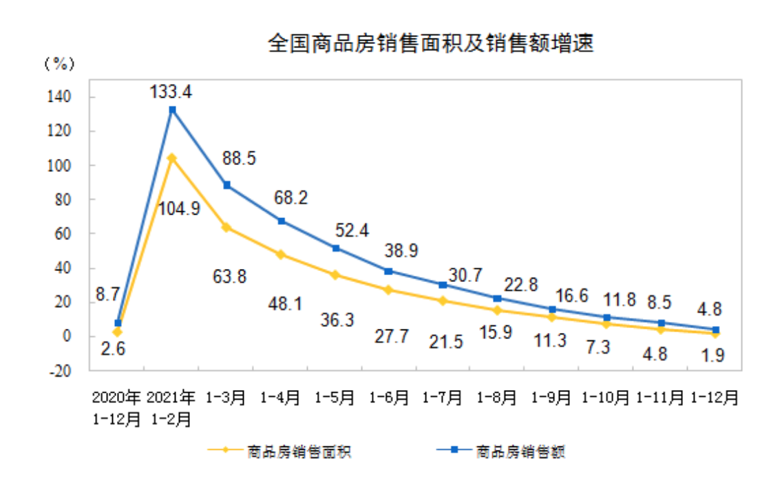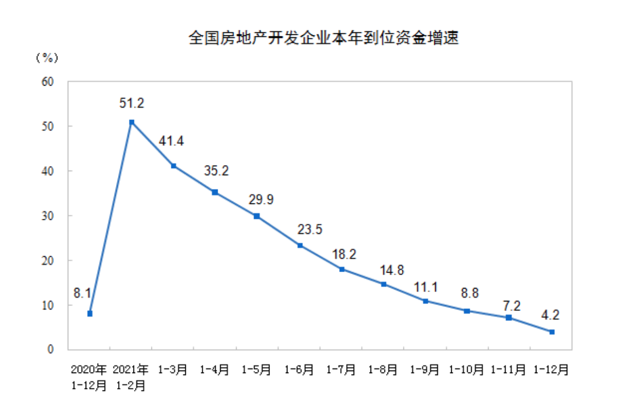 1月17日,国家统计局发布2021年全国房地产开发投资和销售情况。数据显示,自2021年2月达到小高峰后,全国房地产开发投资增速连续10个月收窄。