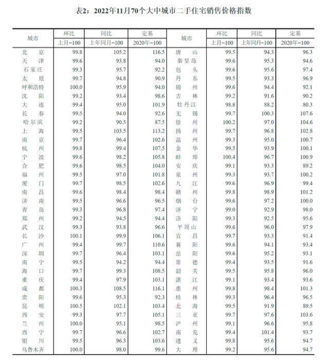 11月份,70个大中城市中,新建商品住宅销售价格环比下降城市有51个,比上月减少7个;二手住宅销售价格环比下降城市有62个,个数与上月相同。