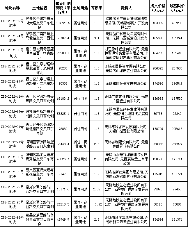 张凯表示,除备受瞩目的编号为锡国土(经)2022-61的XDG-2022-89号地块和编号为锡国土(经)2022-63的XDG-2022-90号地块,其余地块均被地方国资企业竞得。
