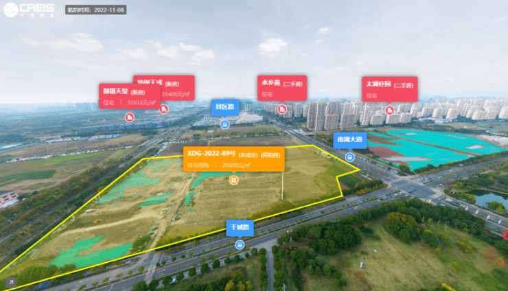 XDG-2022-89号地块位于无锡市经开区干城路与贡湖大道交叉口东北侧,该地块规划为住宅用地,建设用地面积为107727平方米,规划建筑面积为193908平方米。